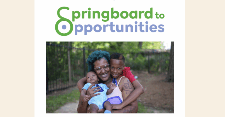 Springboard to Opportunities is, first and foremost, a community partner committed to listening and responding to the needs and perspectives of families with limited financial resources. Through personalized navigation support, we connect residents to essential services, coaching support, opportunities to build social capital, and much more. Resident relationships drive our work, ensuring that all programs and initiatives align with community voices and continuously evolve to meet residents’ shifting needs.